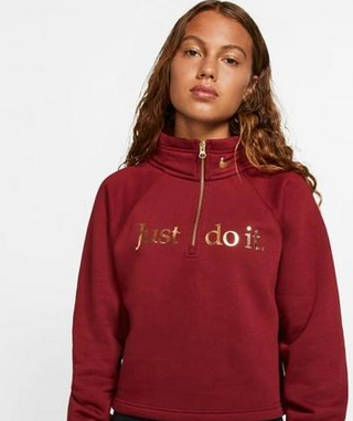 Blusa Nike Sportswear Shine Fleece Plus Size Feminina com Zíper 1/2 Vermelho Brilhante Tamanho 2 Extra Grande