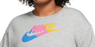 Moletom Nike Sportswear Fleece com gola redonda plus size feminino, cinza, tamanho extragrande