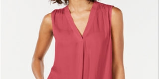 Blusa feminina Alfani com decote em V e regata lisa com pregas rosa tamanho grande