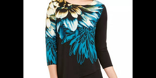 Blusa feminina Alfani Bold Floral Preta Tamanho Pequeno X-Grande
