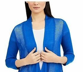 Cardigan feminino Alfani azul manga comprida aberto tamanho pequeno