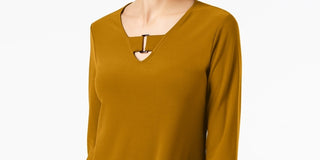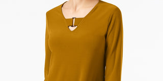 Blusa feminina Alfani com manga bufante, mostarda, tamanho pequeno, P/M