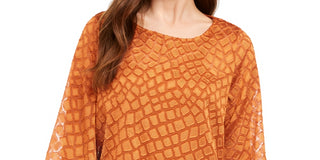 Blusa feminina Alfani com estampa de bolhas e decote redondo, manga sino, para usar no trabalho, tamanho pequeno e marrom