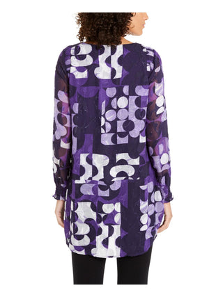 Blusa túnica Alfani Burnout Smocked feminina, roxa, tamanho XS