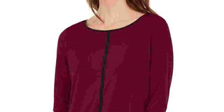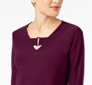 Camiseta feminina Alfani Borgonha lisa manga comprida gola redonda tamanho pequeno vinho