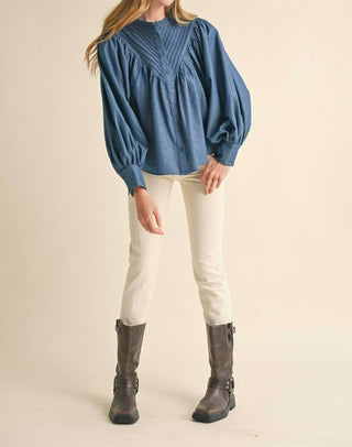 &Merci - Button Down Bubble Sleeve Top