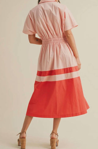 &Merci - Button Down Pleated Waist Midi Dress