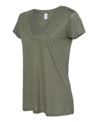 Camisa feminina Alternative Melange Burnout Slinky com decote em V, verde, tamanho pequeno