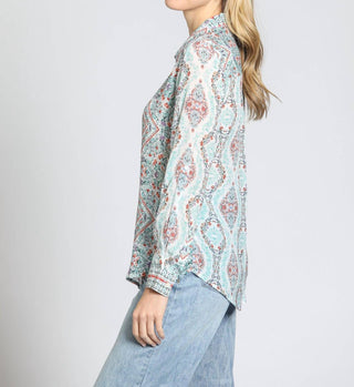 Apny - Geometric Button Down Blouse