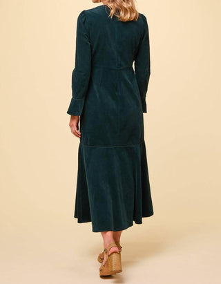Aspiga - Vestido Paloma de veludo cotelê elástico com gola redonda e manga comprida
