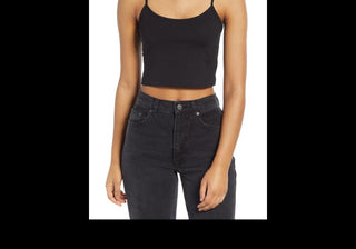 BP. Camisola curta feminina preta de malha de algodão orgânico, tamanho grande