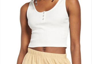 Camiseta curta Henley com mistura de algodão orgânico Bp., cor marfim, tamanho médio