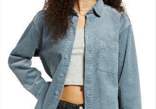 Camisa de botões de veludo cotelê de algodão elástico inclusivo Bp. Gender, tamanho XS, na cor azul Citadel