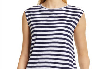 Blusa Caslon de algodão com amarração nas costas e manga curta, tamanho extrapequeno, azul-marinho, com listras brancas