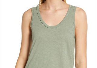 Regata Caslon de algodão com bainha em camadas em verde Dune, tamanho XS