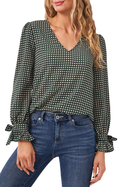 CeCe Long Sleeve V-Neck Top in Geo Box, Size Small
