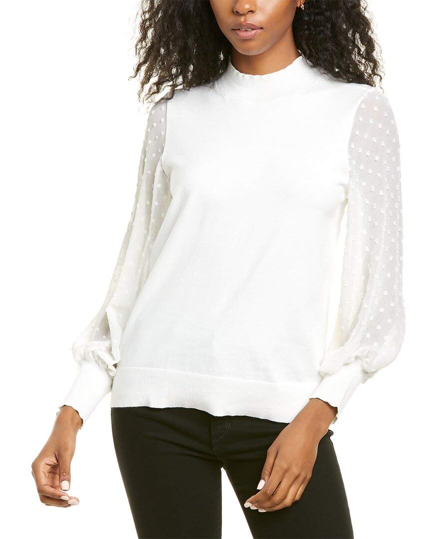 CeCe Sportswear Women's Puff Sleeve Mix Media Knit TOP, Soft Ecru, SM