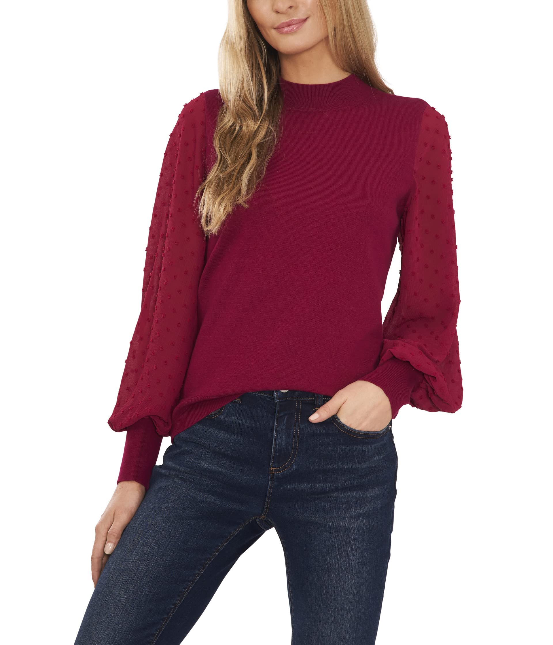 Suéter feminino CeCe com mangas bufantes, rosa, tamanho pequeno