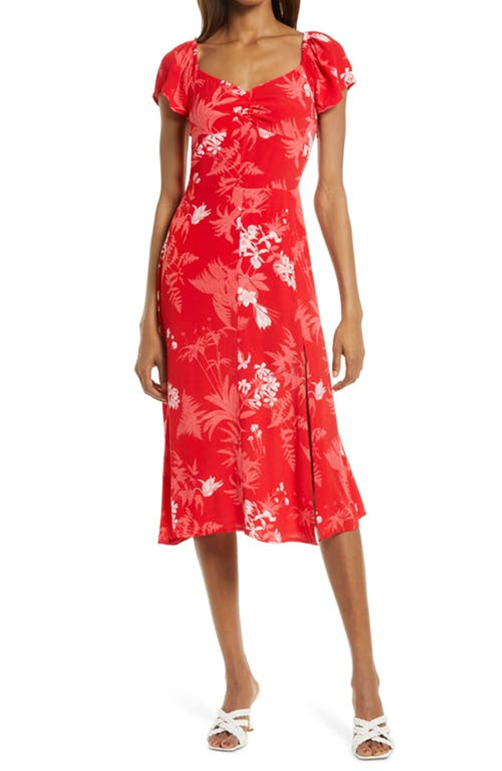 Vestido Chelsea28 com fenda floral em toile tropical chinoise vermelho, tamanho pequeno