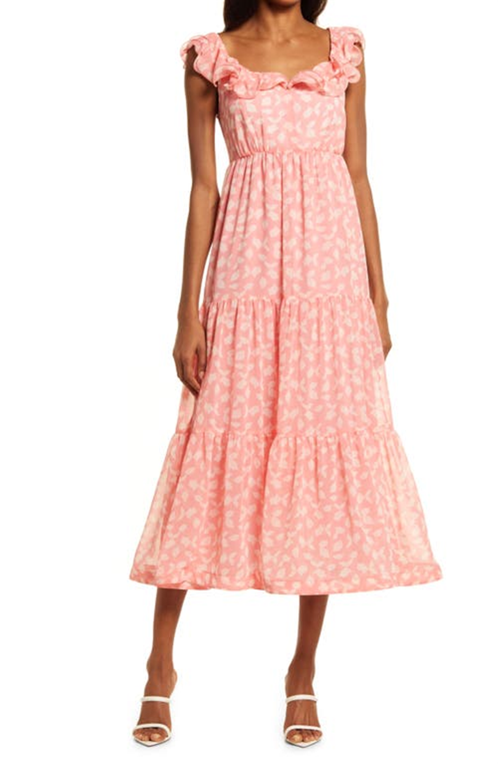 Vestido midi com babados Chelsea28 em folhas caídas rosa, tamanho médio