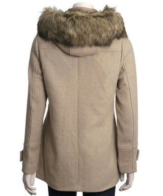 Coffeeshop - Women's Hooded Toggle Coat With Faux Fur Trim
