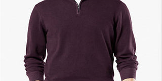 Suéter de algodão Dockers masculino, manga comprida, corte clássico, zíper de um quarto, marrom, tamanho pequeno