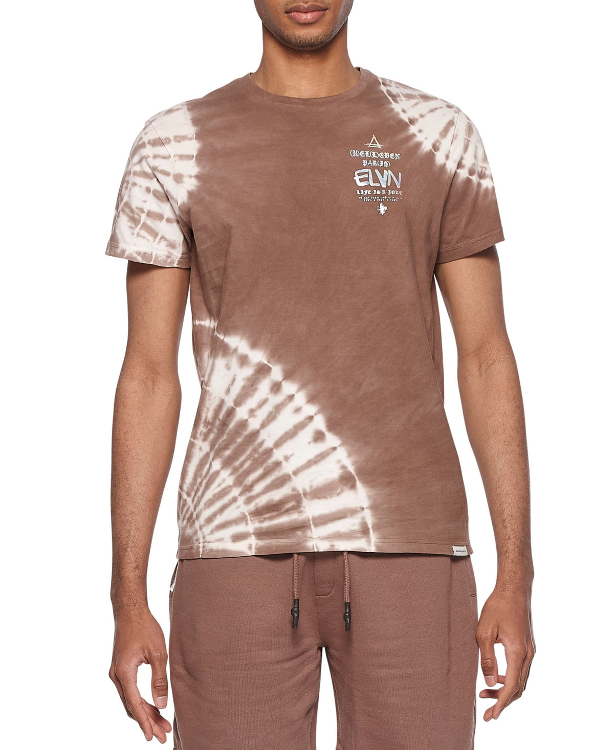 Camiseta masculina tie-dye de algodão com estampa gráfica elevenparis, marrom, tamanho pequeno