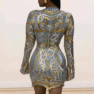 Gaje - Sleek Sequin Long Sleeve Bodycon Mini Dress
