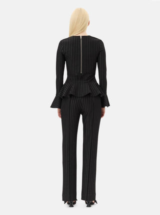 Ganni - Blusa Peplum de Jersey Listrada Compacta
