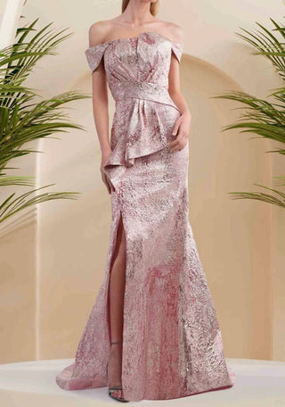 Janique - Off-shoulder Slit Gown