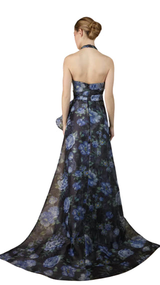 Janique - Organza Collar Halter Gown