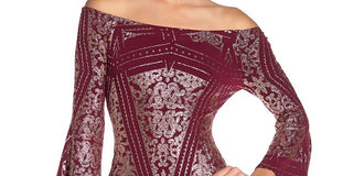 Jump Juniors Glitter Manga Sino Ombro a Ombro Acima do Joelho Vestido de Festa Bainha Vermelho Tamanho Grande