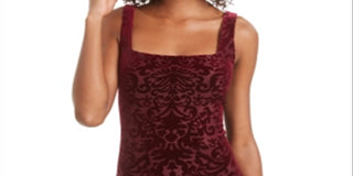 JUMP Vestido de coquetel curto com decote quadrado e sem mangas bordado, tamanho XX-grande, vermelho
