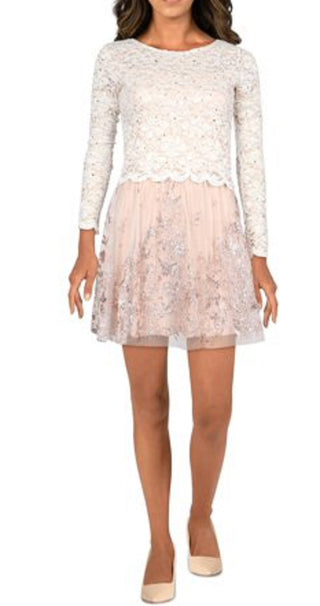 Vestido de festa e coquetel de renda Jump feminino, 2 peças, marrom, tamanho 1/2