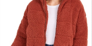 Jaqueta feminina de lã sintética Sherpa Puffer com zíper e pele sintética Kit & Sky, laranja, tamanho grande