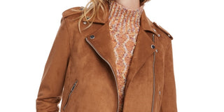 Jaqueta de camurça sintética feminina Kit & Sky, marrom, tamanho médio