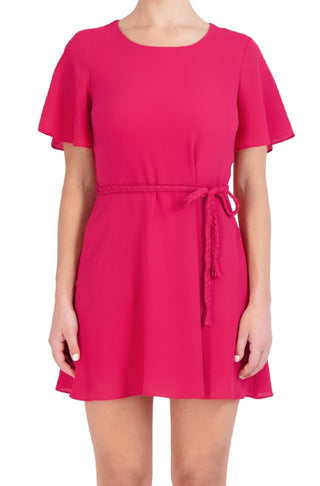 Vestido feminino Laundry com cinto trançado e corte A, vermelho, tamanho 6, pequeno