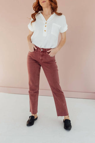 Lovervet - Calça Jeans Reta de Cintura Alta e Tornozelo