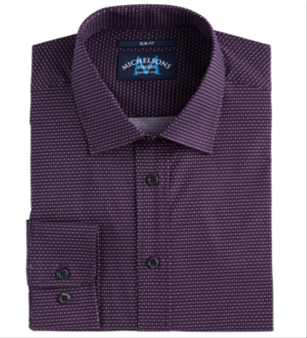 Camisa social masculina Michelsons Slim Fit Performance Stretch Geo Print Roxa Tamanho P