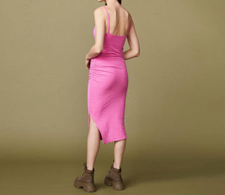 Monrow - RIB LONG SLEEVE SHIRRED DRESS