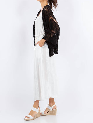 Paparazzi - Cardigan curto de crochê com estampa floral
