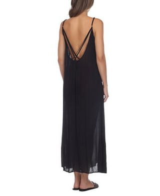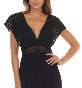 Vestido de renda com amarração nas costas Raviya feminino, saída de banho, preto, tamanho médio