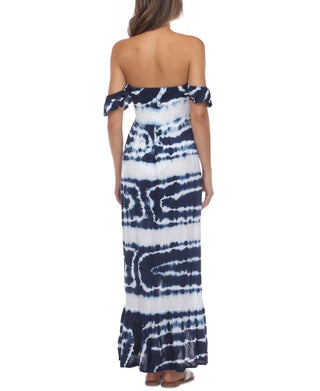 Vestido de banho feminino Raviya Tie Dye com decote ombro a ombro, azul, tamanho pequeno