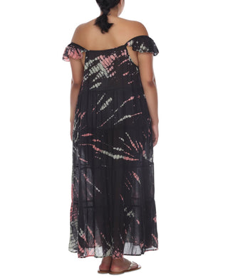 Vestido longo com estampa tie-dye e ombro de fora, preto, tamanho 1X, para mulheres Raviya