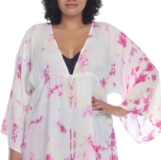 Raviya Feminino Tie Dye Draw Waist Túnica Cover Up Maiô Branco Tamanho 1X