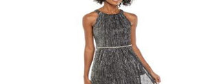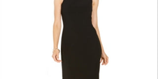 Vestido SLNY feminino com decote halter e cintura enfeitada, preto, tamanho 8