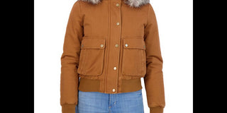 Jaqueta bomber com capuz e acabamento em pele sintética Sebby Junior's, marrom, tamanho médio