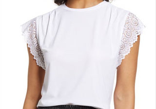 Blusa Halogen(R) com acabamento em renda, tamanho médio, branca