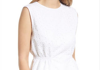 Blusa grande branca de halogênio com ilhós e cintura franzida