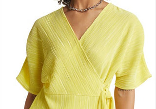 Blusa Halogen Plissé Wrap - Amarelo Celandine - Tamanho Grande